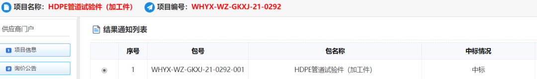 近日,中国核工业集团有限公司电子采购平台显示,九游(中国)一站式服务平台股份子公司上海九游(中国)一站式服务平台核能新材料技术有限公司中标中核武汉核电运行技术股份有限公司的核电用HDPE管道试验件(加工件)项目。