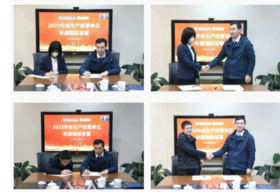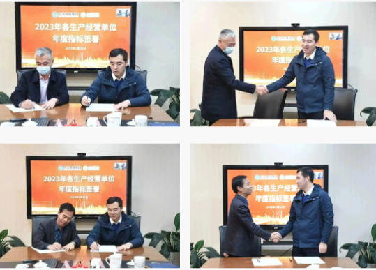 江晓林总经理与各生产经营单位签订2023年度经营指标。年度经营指标代表着企业经营目标的下达,也是经营责任的层层落实,通过年度指标签署明确各方责任,强化各方担当,激发全体成员干劲,齐心协力共同推进公司经营发展目标的达成。